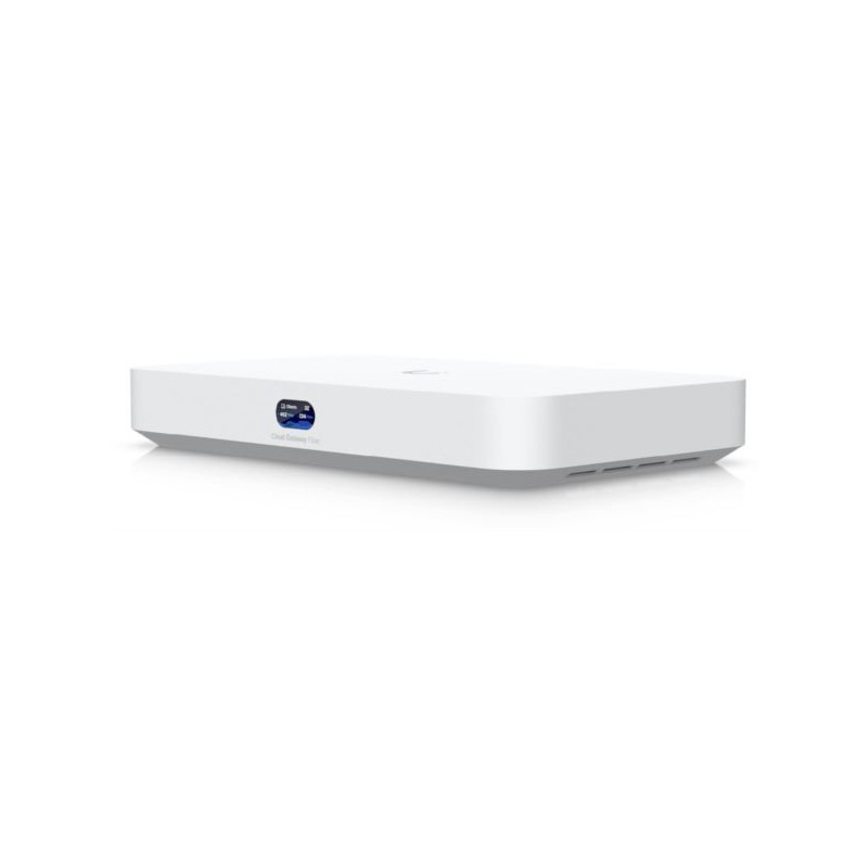 Ubiquiti UCG-Fiber, UniFi Cloud Gateway Fiber - expands the range of compact UniFi Cloud Gateway series. The router features (1) WAN 10Gbps port, (2) 10Gbps SFP ports (1x WAN, 1x LAN), and (4) LAN 1 2.5Gbps ports, including one PoE-OUT port supporting PoE 802.3af at. Its compact yet powerful design supports multi-WAN functionality, including load balancing, and also features IDS IPS support. The router is equipped with various VPN types, including site-to-site VPN
