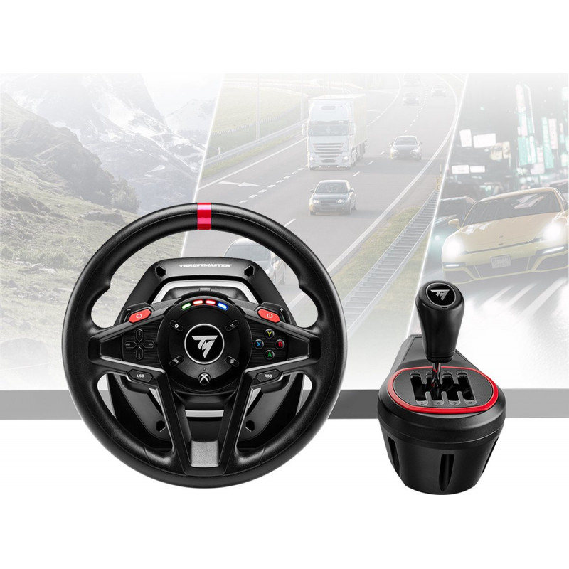 S paketom mjenjača TH8S i volana T128, probudite svoje trkaće instinkte i poboljšajte svoje prebacivanje do maksimuma. Kombinacija trkaćeg upravljača T128 Force Feedback i opcijskog mjenjača TH8S idealan je paket za istraživanje svijeta simulacijskih utrka i ekosustava Thrustmaster. T128 THRUSTMASTER T128 ima HYBRID DRIVE sustav koji kombinira remen i mehanizam zupčanika za pružanje duboke i svestrane povratne informacije o sili i isporučuje 20% više snage (u usporedbi s prethodnim Thrustmaster TMX hibridnim dirkalnimi volani). Lagano upravljanje omogućuje vam da stvarno osjetite osjećaje koje prenosi sustav Force Feedback za autentično trkaće iskustvo i optimizaciju vaših trkaćih linija. S LED trakom u 4 boje možete pratiti okretaje motora i znati kada promijeniti brzinu. Zahvaljujući sustavu pričvršćivanja štipaljkama, trkaći volan se može prilagoditi tako da odgovara stolovima i pultima, čineći montažu brzom i jednostavnom. T2PM set pedala koji dolazi s trkaćim volanom ima patentiranu magnetsku tehnologiju bez trenja za povećanu preciznost koja ne opada tijekom vremena. T128 dizajniran je za sve igrače koji traže prvi trkaći volan koji nudi nove doživljaje i za korisnike koji žele poboljšati svoje vozačke vještine. T128 je službeno licencirani trkaći volan za Xbox Series X|S i Xbox One, a kompatibilan je i s osobnim računalom. Značajke: Duboka i sveobuhvatna povratna informacija o sili kako biste istinski iskusili osjećaje utrke: brzinu, površinu, neravnine i sudare i gubitak prianjanja gume. LED diode za broja okretaja motora za optimalno mijenjanje brzina Magnetne ručice mjenjača (patentirana H.E.A.R.T. tehnologija) za trenutačnu reakciju i jasan osjećaj mjenjača Moderan dizajn s 13 gumba, pogodan za sve stilove vozila i igara Sustav brzog pričvršćivanja, pogodan za stolove i pulte debljine do 5,5 cm Magnetski set pedala s dvije pedale (patentirana H.E.A.R.T. tehnologija) s 12-bitnom preciznošću koja se ne smanjuje tijekom vremena Tehnologija HYBRID DRIVE sljedeće generacije daje 20% više snage od drugih Thrustmaster hibridnih trkaćih volana (serija TMX) Pristupite stotinama igara uz 1-mjesečnu besplatnu pretplatu na Xbox Game Pass Ultimate Službeno licenciran za Xbox i kompatibilan s Xbox Series X|S, Xbox One i PC (Windows 10/11) TH8S Zaronite još dublje u svoje omiljene trkaće naslove i proširite svoju postavu s Thrustmaster TH8S dodatkom za mjenjač. S osam stupnjeva prijenosa raspoređenih u obliku slova H, možete jednostavno prebaciti 7 stupnjeva prijenosa naprijed i jedan stupanj za vožnju unatrag za realističan ručni osjećaj. Ergonomski mjenjač u sportskom stilu pruža vam realno iskustvo utrke, tako da ćete se osjećati kao da sjedite na vozačkom mjestu svog omiljenog vozila. TH8S je opremljen tehnologijom H.E.A.R.T., koja pruža poboljšani odziv bez ugrožavanja vijeka trajanja ručice mjenjača za dugoročne performanse. Uključeni sustav za montažu na štipaljke prilagođava se raznim stolovima i drugim potpornim površinama kao što su trkaći kokpiti za jednostavnu instalaciju i realističan osjećaj. Kompatibilnost TH8S uključuje potrebne kabele za povezivanje mjenjača s vašim računalom i razne volane napravljene za PC, Xbox One, Xbox Series X|S, PlayStation 4 i PlayStation 5 konzole. TH8S se može koristiti s raznim trkaćim kotačima Thrustmaster uključujući: T128, T150, T248, T300RS, T-GT, T-GT II, TMX, TX, TS-XW, TS-PC, T818 i osnovni T818 Izdanje Ferrari. Tehnički podaci Kompatibilnost Thrustmaster T128 / T150 / T248 / T300RS / T-GT / T-GT II / TMX / TX / TS-XW / TS-PC / T818 / T818 Ferrari Edition Ulazi / izlazi USB ulaz / izlaz 1 x USB-C ženski izlaz USB izvor napajanja Pričvršćivanje 1 x stezaljka Crna boja Dimenzije 24 x 22 x 13 cm Težina 599 g