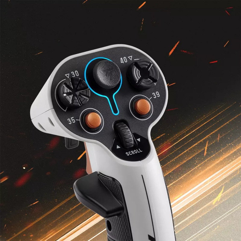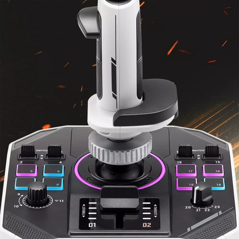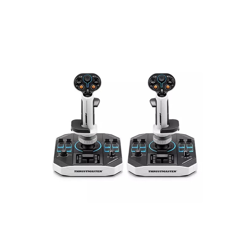 VIŠEFUNKCIJSKE LETEĆE PALICEHOSAS konfiguracija Sol-R 2 HOSAS Space Sim Duo pruža izuzetno realističan i uranjajući doživljaj svemirskog letenja, a omogućuje i više akcija palcem. Svaka palica ima 21 tipku, uključujući 2 okidača (1 dvostruki okidač), 2 hat prekidača, 1 ministick i 1 kotačić za palac – za potpunu spretnost pri pilotiranju letjelice.