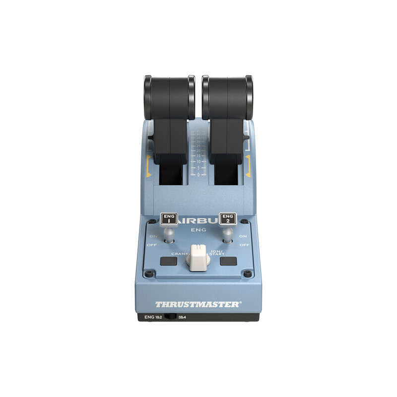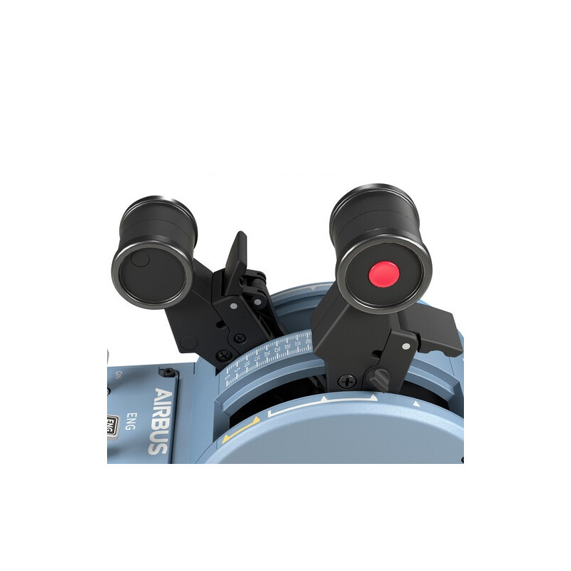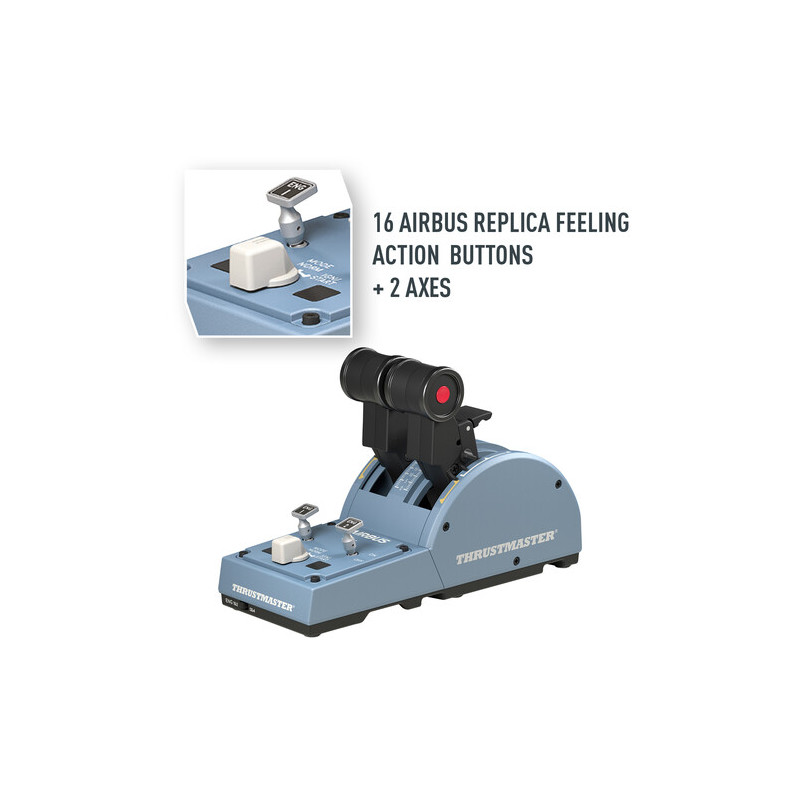 Donesite realističnu kontrolu na svoj simulator leta pomoću TCA Quadrant Airbus Edition tvrtke Thrustmaster. Dizajniran za realno iskustvo upravljanja komercijalnim zrakoplovima, ovaj kvadrant za gas ima Airbusov upravljačku ploču, kao i reverzer potiska. Razine potiska također se mogu prilagoditi kako bi se prilagodili različitim zrakoplovnim stilovima, a zatezni vijak na donjoj strani komandi može se koristiti za pronalaženje optimalne razine otpora. Magnetski senzori s Hallovim efektom pružaju preciznu kontrolu osovina nagiba i kotrljanja s 14-bitnom razlučivosti. Nadalje, ova Airbusova replika uključuje realistična zaustavljanja u praznom hodu, usponu, savijanju, uzlijetanju i kretanju ili TO / GA. Uz to, ovaj kvadrant gasa uključuje dvije preklopne sklopke glavnog ventilatora motora i osam gumba za fizičku akciju. Još osam virtualnih gumba podijeljeno je u skupine od po četiri za svaku os. Thrustmaster TCA Quadrant Airbus Edition kompatibilan je sa sustavom Windows 8 i novijim verzijama, a može se koristiti s drugim Thrustmaster kontrolama, uključujući T.Flight pedale kormila i Thrustmaster Pendular Rudder. Također je kompatibilan s hardverskim nosačem TM Flying Clamp. Ugrađena nadogradnja Upotrijebite priložene konektore za uparivanje TCA Quadrant Airbus Edition s opcionalnim pedalama kormila T.Flight ili drugim komandama Thrustmaster - dostupne zasebno. Dva kvadranta leptira za gas mogu se čak povezati i, s dva navoja M6 vijaka, pričvršćivanje na simulirani kokpit je brzo i jednostavno. Nema namjenskog prostora na simulatoru? Nema problema! Šest gumenih jastučića pružaju stabilnost pri korištenju kvadranta na stolu. Uključi i igraj Iskoristite izvornu integraciju u Microsoft Flight Simulator 2020, koji automatski prepozna kvadrant leptira za gas. Kompatibilno sa softverom T.A.R.G.E.T.