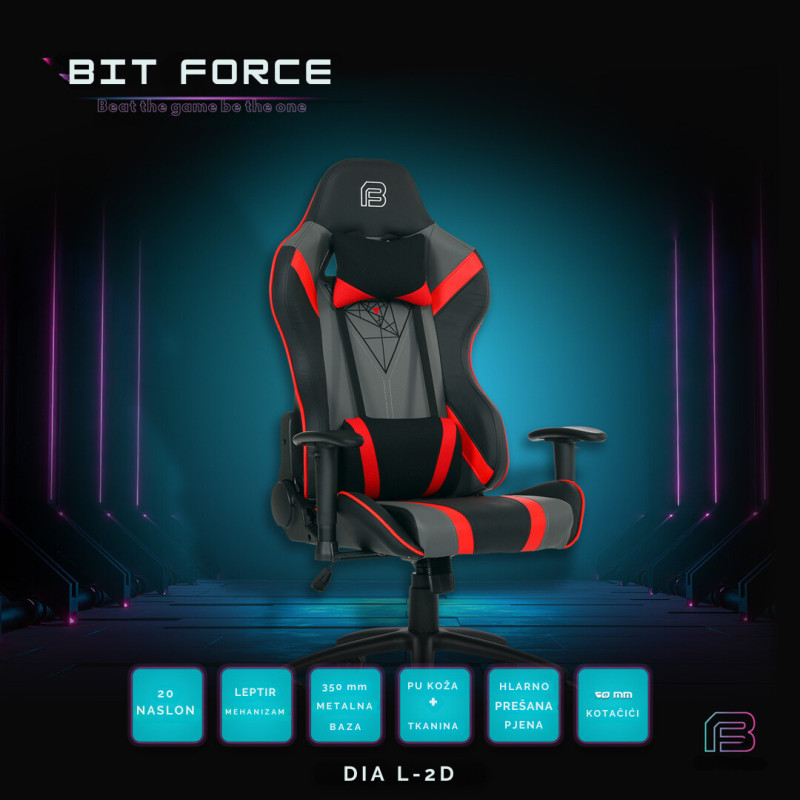- Udobna, funkcionalna i estetski atraktivna. Dostupna u kombinaciji crne, sive i crvene boje, prilagodljiva je svakom gaming set-upu.