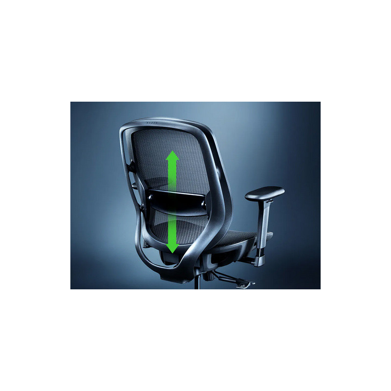 Ergonomski naslon za leđa ima i podesivu lumbalnu potporu. Potpora se prilagođava krivulji kralježnice i osigurava bolje držanje.