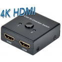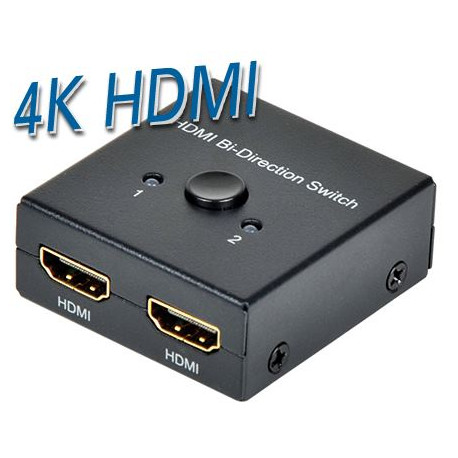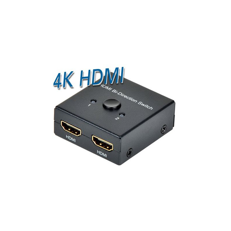 Transmedia CS32-L HDMI 4K bidirectional Splitter Switch - For connecting two HDMI sources to one display or one HDMI source to two displays 1 device, 2 application possibilities supports 4K (2160P), 3D and Full HD (1080p), no external power supply required, dual LEDs to display status, switching by push button