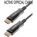 Transmedia C508-20M Active Optical HDMI 2.0 cable, 20m - Supports 4K@60Hz, YUV 4:4:4, 3D, HDR, HDCP 2.2 High-quality, high-gloss metal plugs Gold plated contacts Thin cable, only O 4,5 mm Min. bending radius 15 mm Ultra flexible, easy to install Consists of high-quality multimode fiber optic cables, Innovative digital optical converters integrated in the connectors On spool with colored information print In gift box The cable is unidirectional and therefore may not be connected to the wrong port (screen device). The plug ends are marked Display and Source .