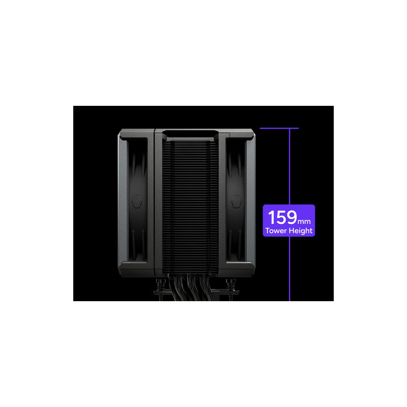 Snažan hladnjak sa šest kompozitnih bakrenih toplinskih cijevi i dva Mobius 120P PWM ventilatora za učinkovito odvođenje topline. Podržava AMD AM5/AM4 i Intel 1851/1700 sockete. Sa svojom visinom od 159 mm, odgovara većini kućišta srednje veličine.