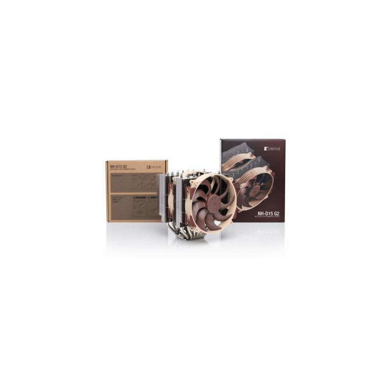 Noctua NH-D15 G2. Tip: Zračno hlađenje, Promjer ventilatora: 14 cm, Brzina okretanja (min): 1250 RPM, Brzina okretanja (max): 1500 RPM, Protok zraka: 155,6 m³/h, Vrsta ležaja: Self-Stabilising Oil-pressure (SSO) bearing. Napon: 12 V. Širina: 150 mm, Dubina: 152 mm, Visina: 168 mm