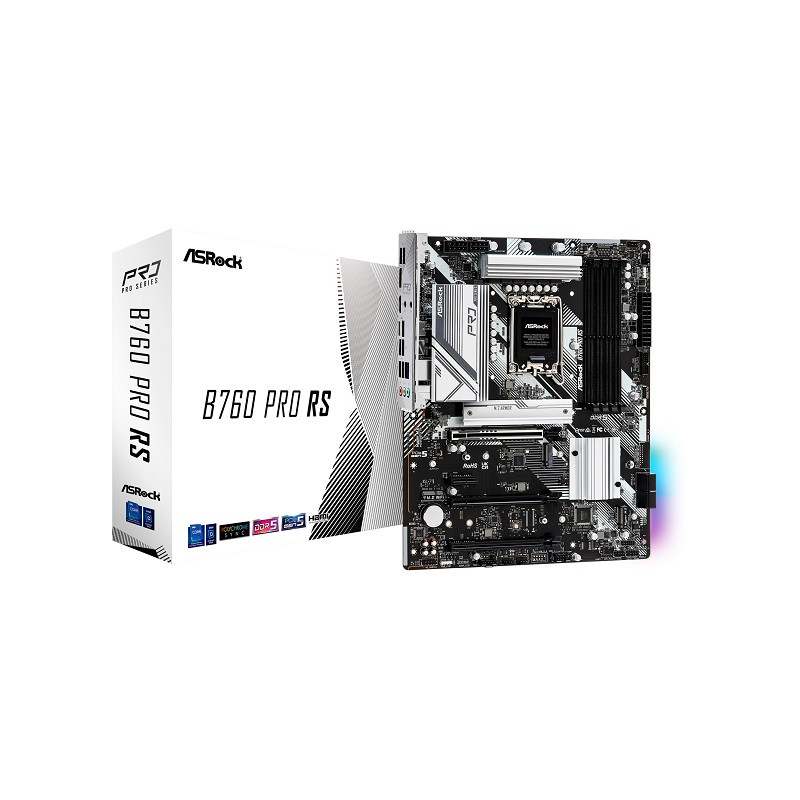 The ASRock B760 Pro RS motherboard is based on the Intel® B760 chipset and supports 13th and 12th generation Intel® socket 1700 processors. It has four DDR5 DIMM slots in dual-channel operation for up to 128 GB of RAM.