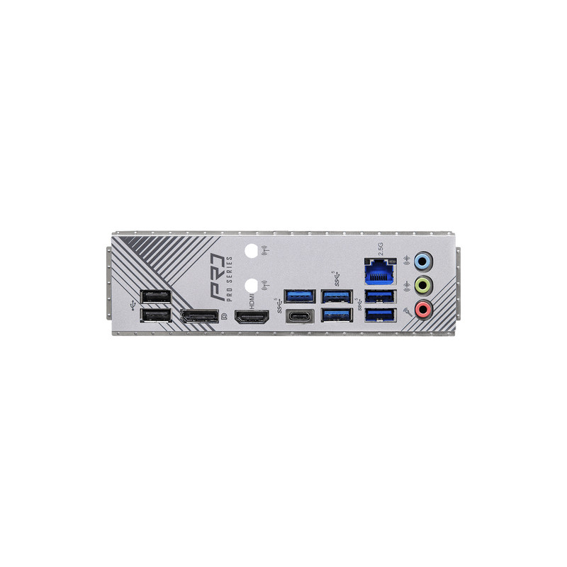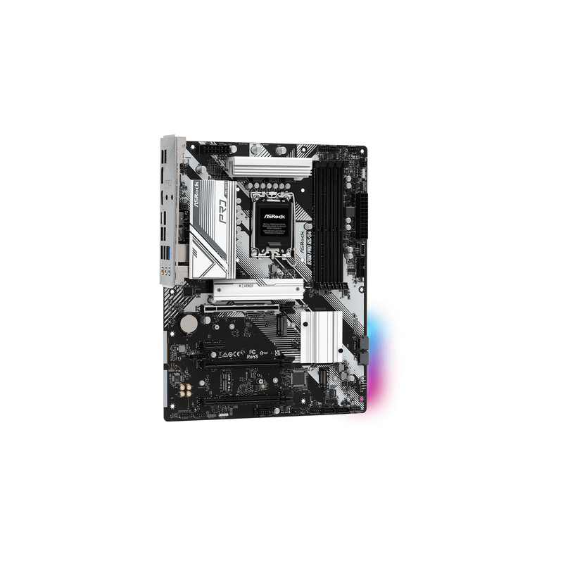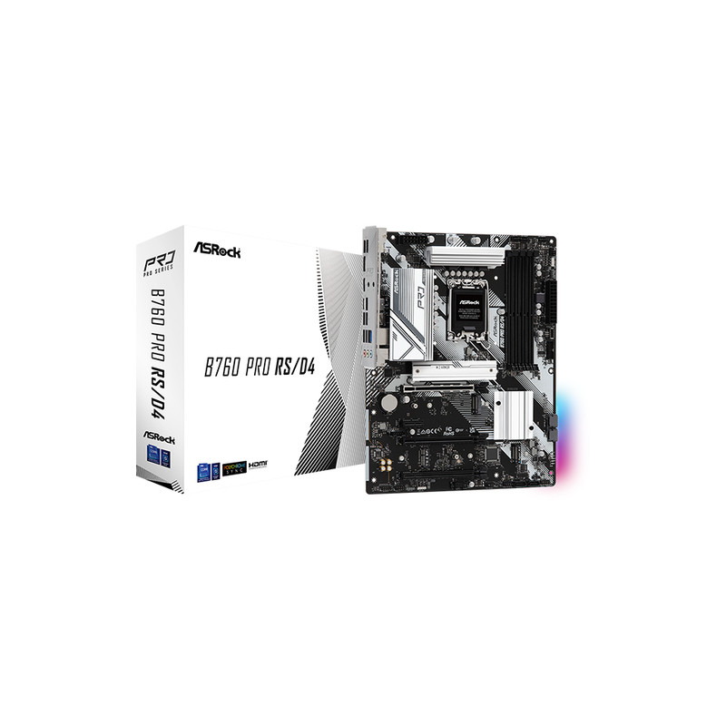 Asrock B760 Pro RS/D4. Proizvođač procesora: Intel, Utor za procesor: LGA 1700, Kompatibilni procesori: Intel® Core™ i3, Intel® Core™ i5, Intel® Core™ i7, Intel® Core™ i9. Podržani tipovi memorije: DDR4-SDRAM, Maksimalna količina interne memorije: 128 GB, Tip memorijskih utora: DIMM. Podržana sučelja pogona za pohranu: M.2, SATA III, Podržani tipovi pogona: HDD & SSD, RAID tipovi: 0, 1, 5, 10. Vrsta Ethernet sučelja: 2.5 Gigabit Ethernet, LAN kontroler: Realtek RTL8125-BG. Komponenta za: PC/osobno računalo, Dimenzije matične ploče: ATX, Obitelj čipseta matične ploče: Intel