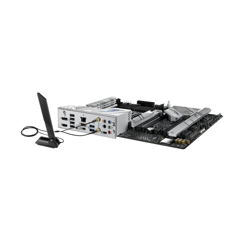 ASUS ROG STRIX B760-A GAMING WIFI. Proizvođač procesora: Intel, Utor za procesor: LGA 1700, Kompatibilni procesori: Intel® Celeron®, Intel® Pentium® Gold, Intel® Core™ i3, Intel® Core™ i5, Intel® Core™.... Podržani tipovi memorije: DDR5-SDRAM, Maksimalna količina interne memorije: 192 GB, Tip memorijskih utora: DIMM. Podržana sučelja pogona za pohranu: M.2, SATA III, Podržani tipovi pogona: HDD & SSD, RAID tipovi: 0, 1, 5, 10. Vrsta Ethernet sučelja: 2.5 Gigabit Ethernet, Vrhunski Wi-Fi standard: Wi-Fi 6E (802.11ax), Wi-Fi standarde: 802.11a, 802.11b, 802.11g, Wi-Fi 4 (802.11n), Wi-Fi 5 (802.11ac), Wi-Fi 6 (802.11ax), Wi-Fi 6E.... Komponenta za: PC/osobno računalo, Dimenzije matične ploče: ATX, Obitelj čipseta matične ploče: Intel