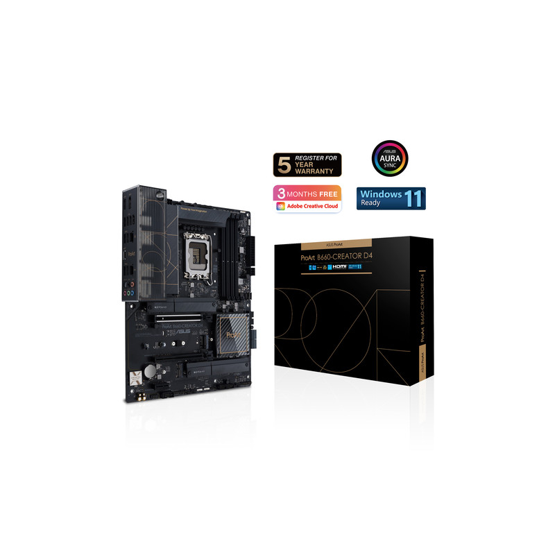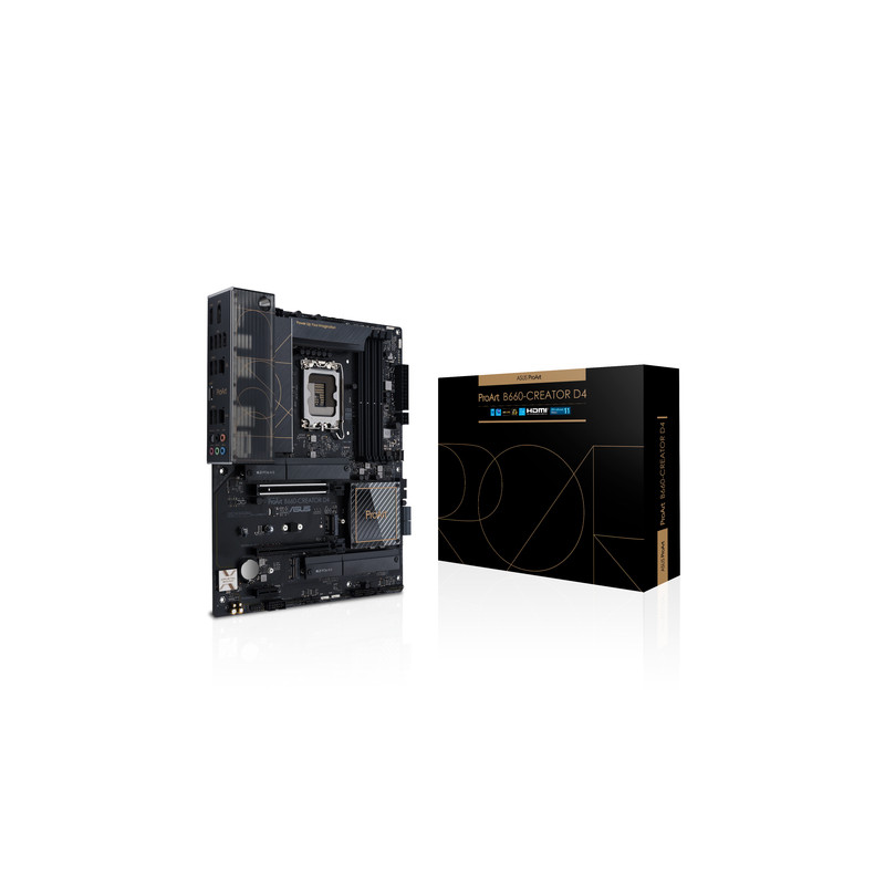 ASUS PROART B660-CREATOR D4, Intel, LGA 1700, Intel® Celeron®, Intel® Core™ i3, Intel Core i5, Intel Core i7, Intel Core i9, Intel® Pentium® Gold, LGA 1700, DDR4-SDRAM, 128 GB