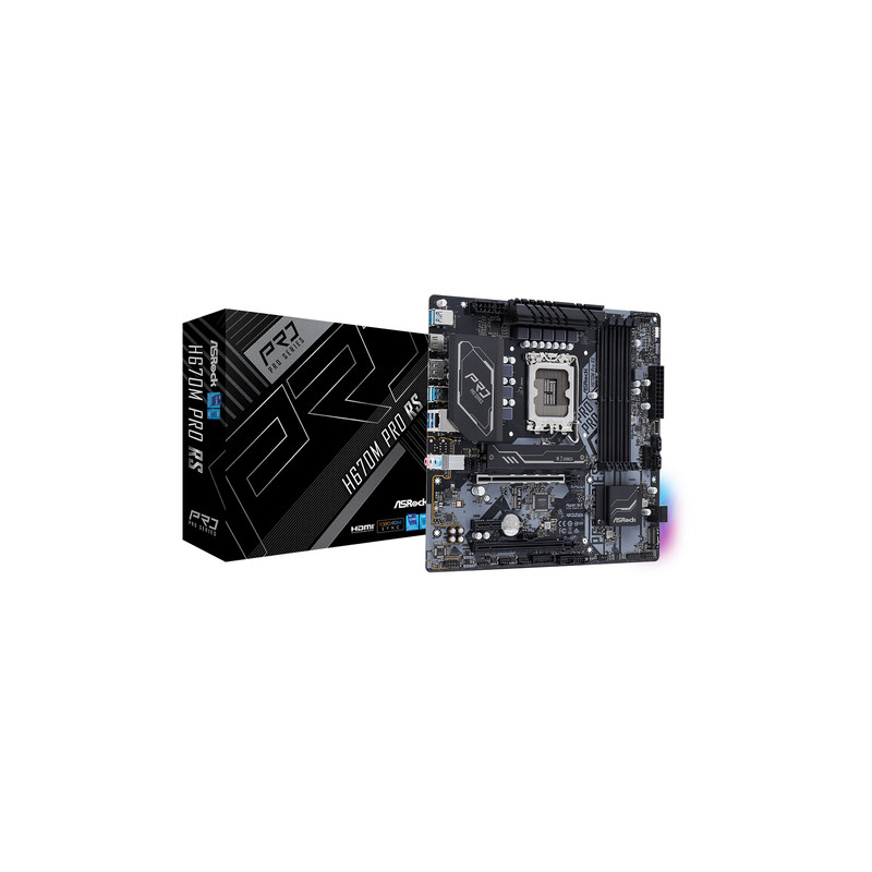 Asrock H670M Pro RS, Intel, LGA 1700, Intel® Celeron®, Intel® Core™ i3, Intel® Core™ i5, Intel® Core™ i7, Intel® Core™ i9, Intel® Pentium®, DDR4-SDRAM, 128 GB, DIMM