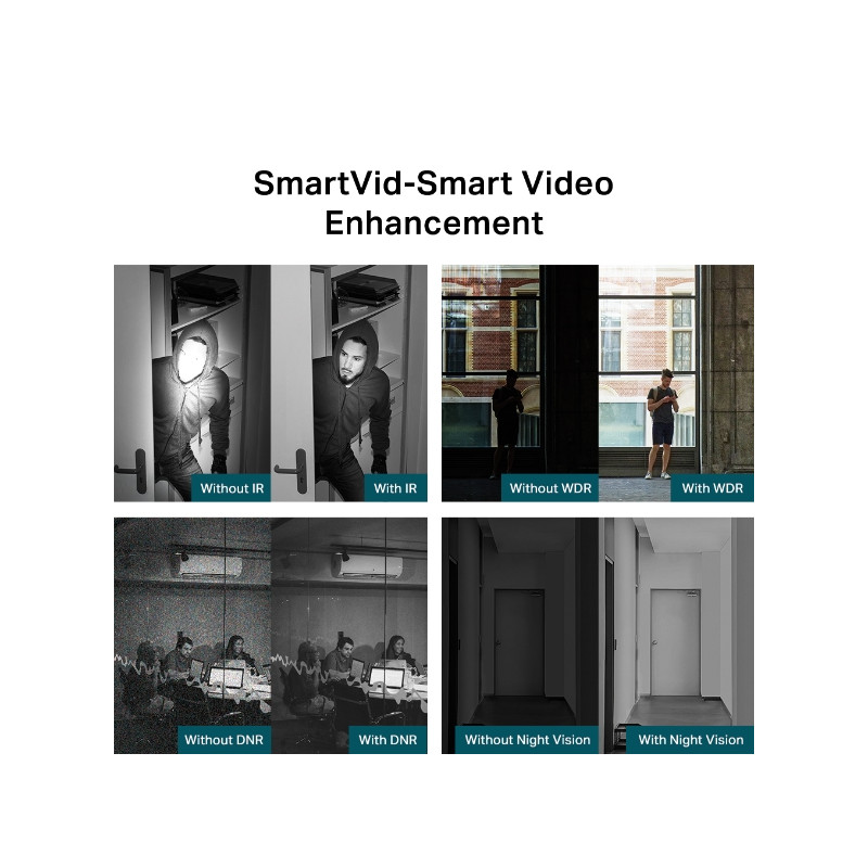 - Poboljšanje slike: Smart IR, WDR, 3D DNR, noćni vid