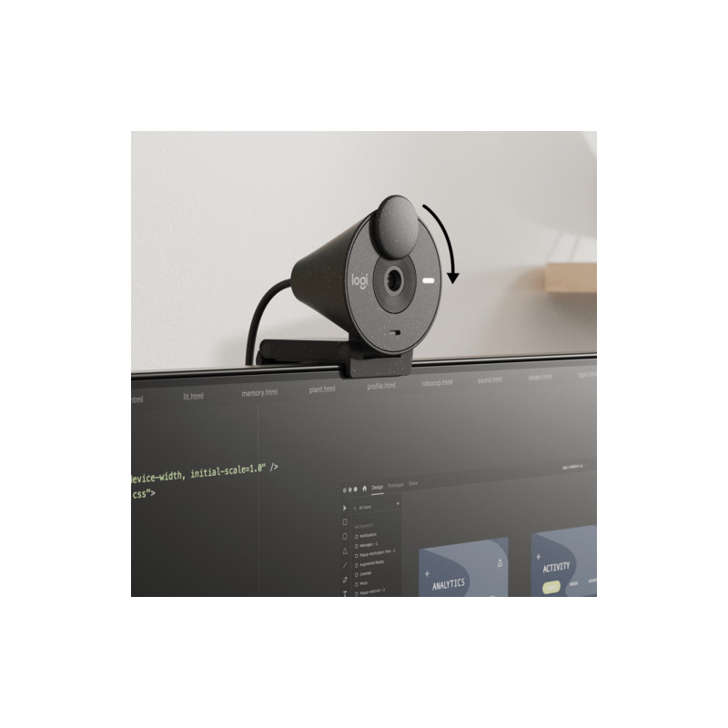 Brio 300 je kompaktna web kamera koja omogućuje video pozive u 1080p FullHD. Nudi napredne značajke automatskog podešavanja osvjetljenja pomoću RightLight 2. Opremljen je mono mikrofonom koji smanjuje okolnu buku za jasnije snimanje glasa.
