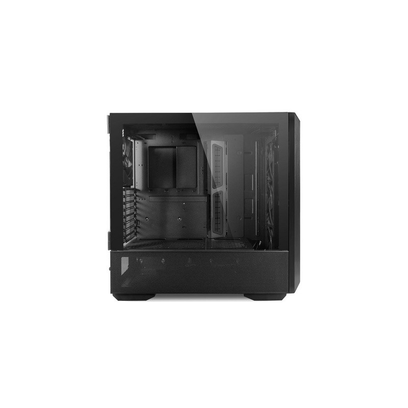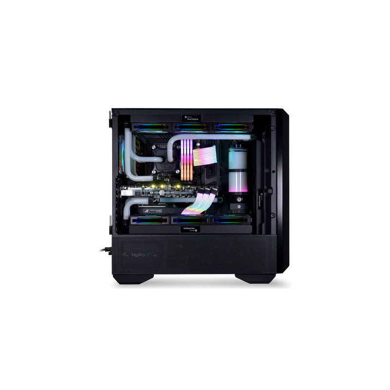 Stranice od kaljenog stakla nagnute su u stranu, omogućujući nesmetan pristup i pogled na unutrašnjost kućišta. Donji dio stranica također se lako otvara i omogućuje pristup napajanju i diskovima. Unutrašnjost kućišta je fleksibilna i nudi različite načine ugradnje rashladnog sustava po želji: zračno, AIO ili prilagođeno vodeno hlađenje.