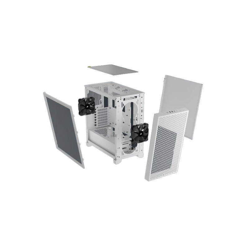 Corsair CC-9011252-WW. Veličina: Midi Tower, Tip: PC/osobno računalo, Boja proizvoda: Bijelo. Postavljeni prednji ventilatori: 1x 120 mm, Postavljeni donji ventilatori: 1x 120 mm, Podržani promjer donjih ventilatora: 120 mm. Podržane veličine tvrdog diska: 2.5,3.5". Širina: 230 mm, Dubina: 462 mm, Visina: 466 mm