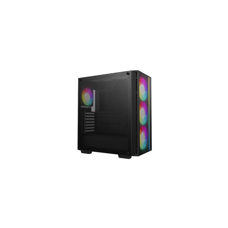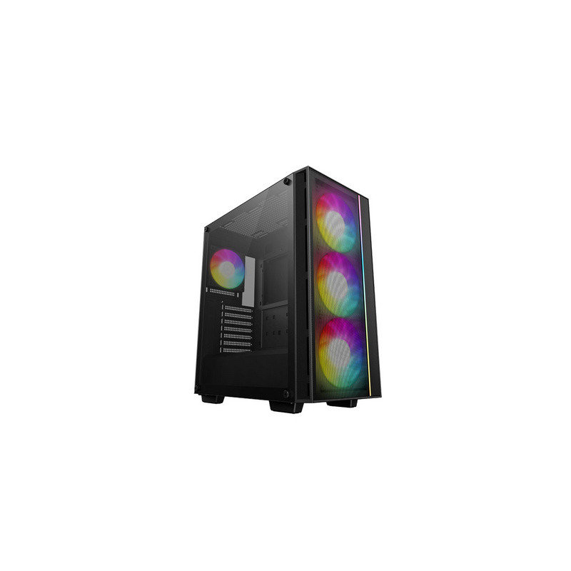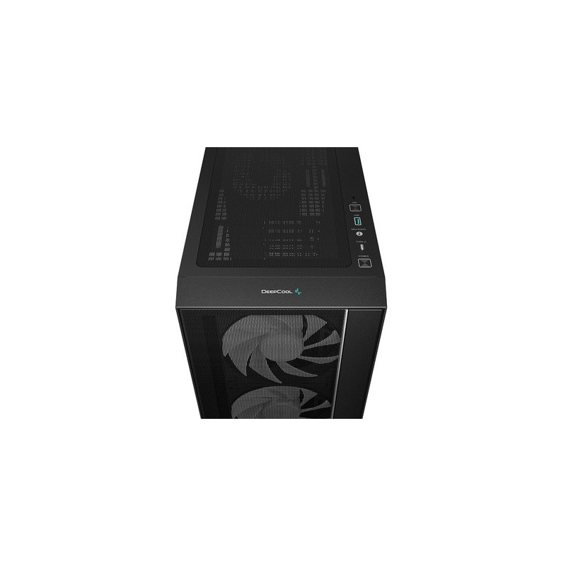 Vidljivi su prednji ARGB ventilatori i LED traka koja se proteže niz desnu stranu, a ventilatori su nadograđeni na tri 140 mm PWM ventilatora sprijeda i 120 mm ARGB ventilator straga. Mrežasta prednja strana pruža izvrsnu prozračnost.