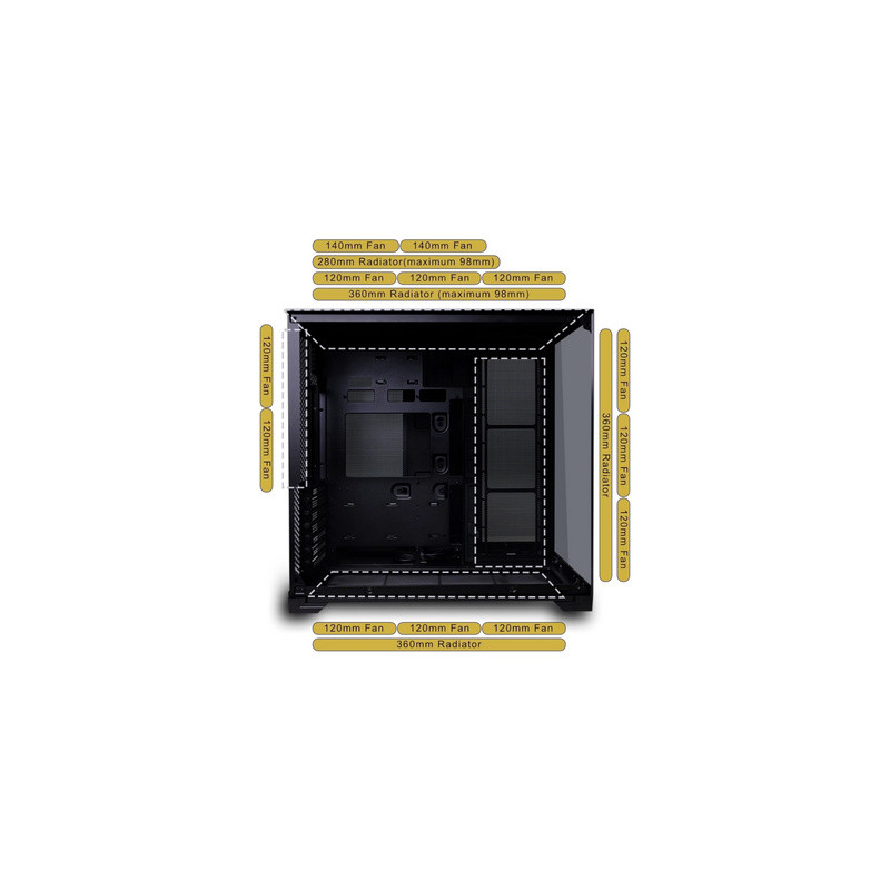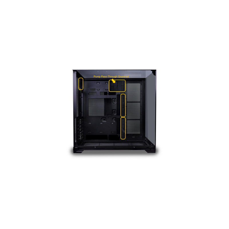 Kućište omogućuje korištenje s mrežastim ili kaljenim staklenim vrhom. Mrežasti sklop prikladan je za korištenje s AIO instalacijom, a stakleni sklop nudi 270° pogled na unutrašnjost.