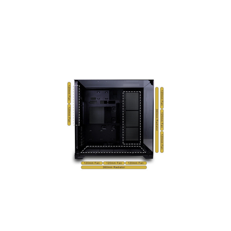 O11 Vision Compact je elegantno kućište za računalo s tri strane izrađene od kaljenog stakla bez srednjih potpornih nosača. Omogućuje nesmetan pogled na hardver unutar kućišta.
