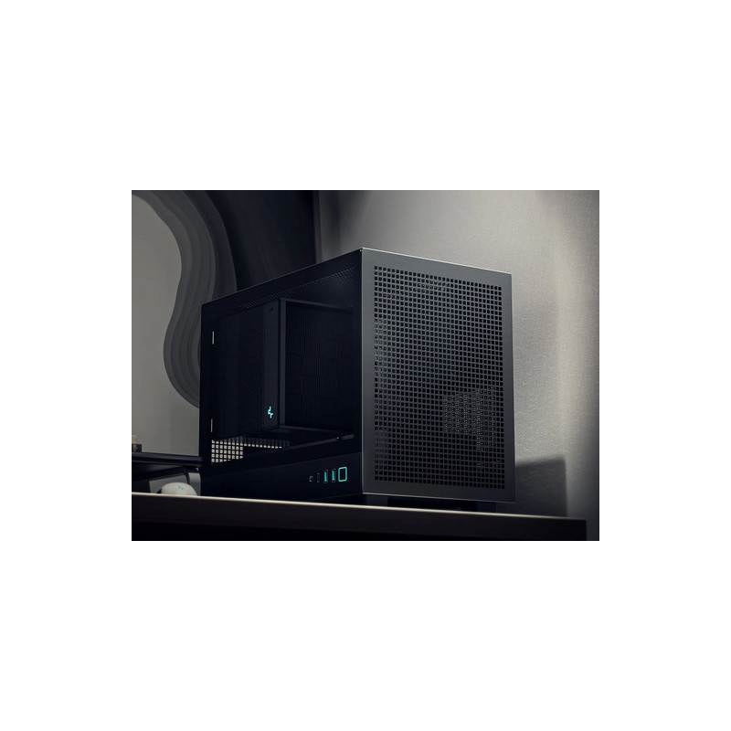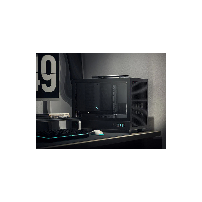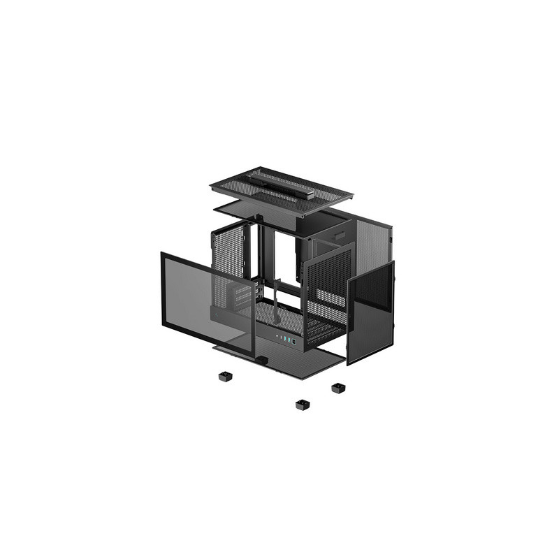 Kutija ima stranice izrađene od mrežastih ploča s tri strane. Bočne strane osiguravaju odličan protok zraka i učinkovitu izmjenu toplog zraka sa svježim. Jedna strana je izrađena od kaljenog stakla za izvrstan pregled komponenti iznutra.