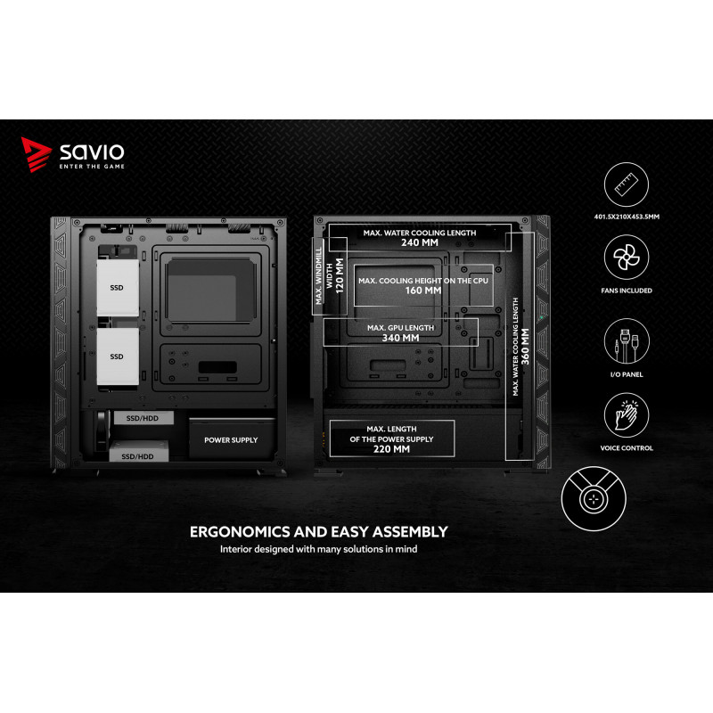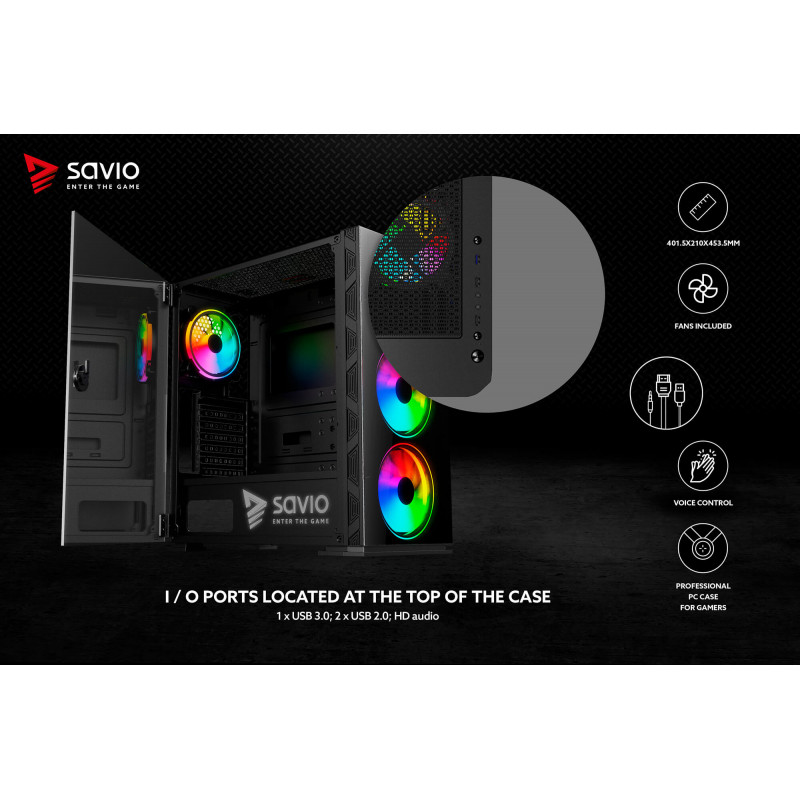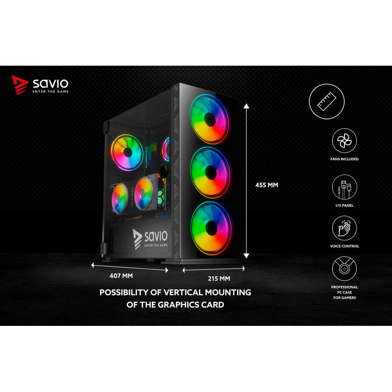 Kućište Savio X1 RaptorARGB ATX Mid-Tower. Mesh Glass