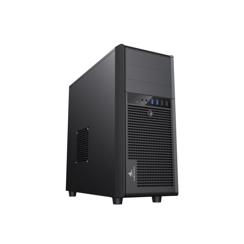 NaviaTec 8821X ATX Mid Tower PC Case - Front I O: 2x USB 3.0, 1x USB Type-C, 2x USB 2.0, 3.5mm Audio Dimension (Total): 185(W) x 438(H) x 450(D) mm Dimension (Chassis): 185(W) x 410(H) x 410(D) mm Drive Bays: 2x 5,25", 4x 3,5" (2x Toolless bays), 2x 2,5" Metal Thickness: SGCC; 0,5mm Expansion Slots: 7 Slots Fits MB: ATX, Mini ATX, MicroATX PSU mount: bottom 1x 8cm fan in back