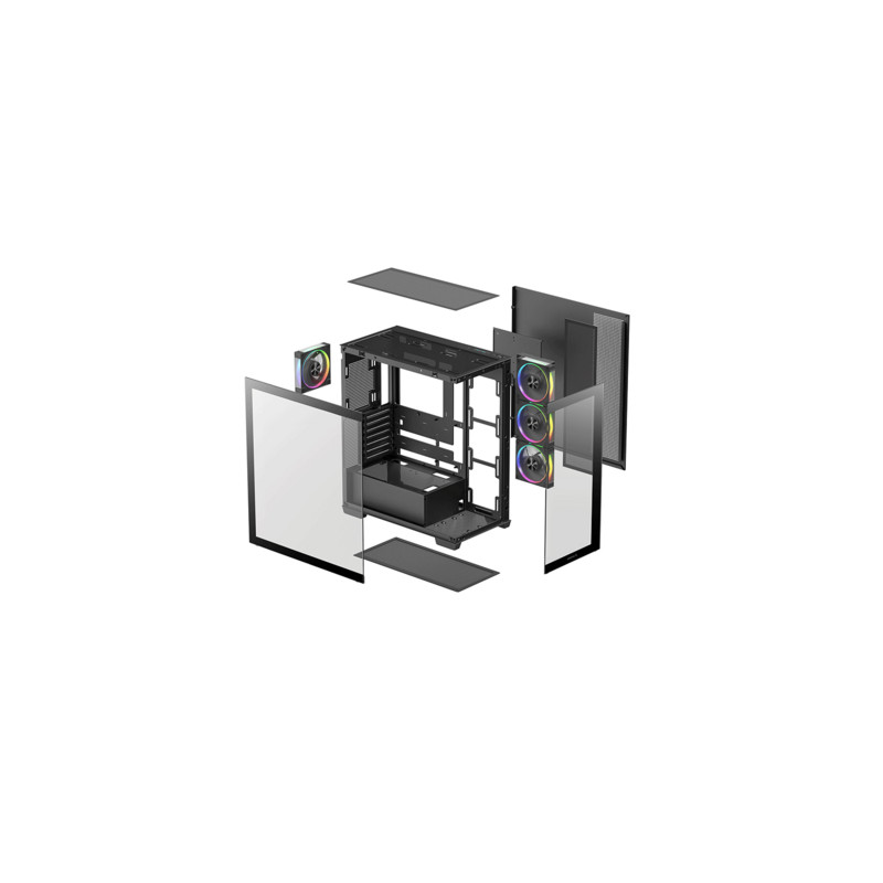 Kućište može primiti matične ploče do ATX veličine, AIO hladnjake do 360 mm na vrhu i sa strane, grafičku karticu duljine do 410 mm, napajanje od 210 mm, CPU hladnjak od 176 cm i do devet ventilatora od 120 mm. Kućište ima ugrađena 4x ARGB ventilatora.