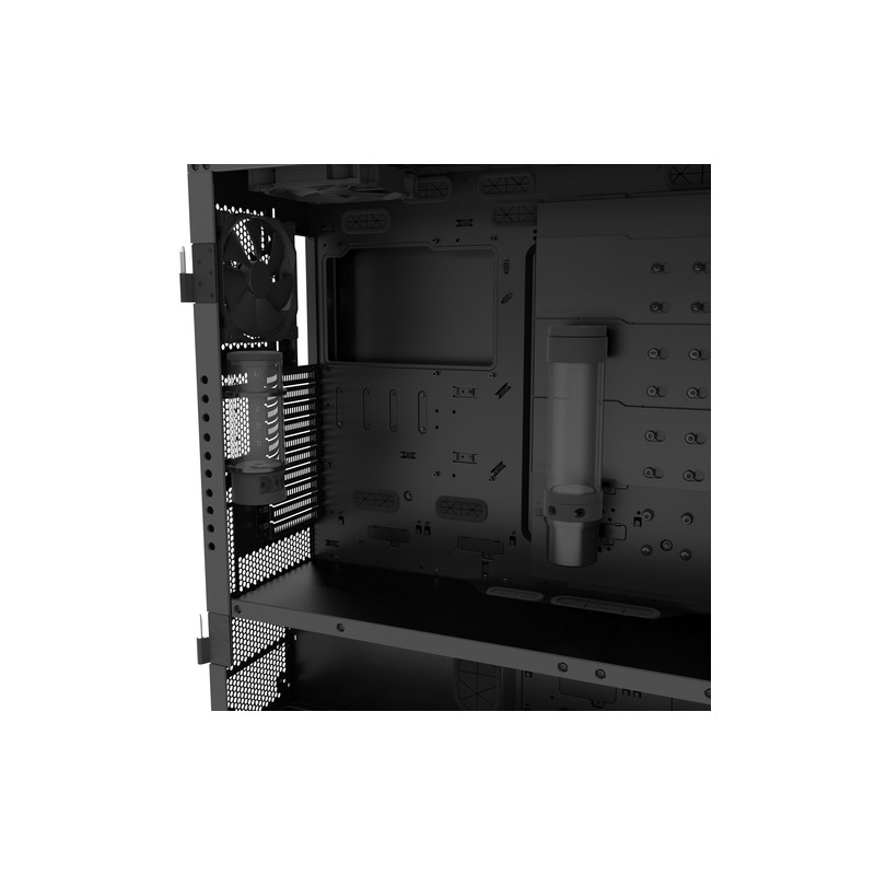 Phanteks Enthoo Elite. Veličina: Full Tower, Tip: PC/osobno računalo, Materijal: Aluminij, Čelik, Kaljeno staklo. Pozicija izvora napajanja: Dno. Postavljeni prednji ventilatori: 3x 140 mm, Podržani promjeri prednjih ventilatora: 120,140 mm, Podržani promjer bočnih ventilatora: 120,140 mm. Podržane veličine tvrdog diska: 2.5,3.5". Širina: 270 mm, Dubina: 615 mm, Visina: 750 mm