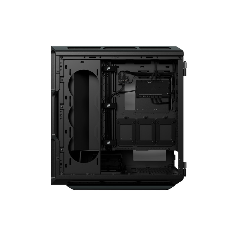 Corsair CC-9011230-WW. Veličina: Midi Tower, Tip: PC/osobno računalo, Boja proizvoda: Crno. Pozicija izvora napajanja: Dno, Podržani faktori ugradnje jedinice za napon: ATX. Postavljeni prednji ventilatori: 3x 120 mm, Podržani promjer bočnih ventilatora: 120 mm, Podržani promjeri stražnjih ventilatora: 120 mm. Podržane veličine tvrdog diska: 2.5,3.5". Širina: 251 mm, Dubina: 530 mm, Visina: 560 mm