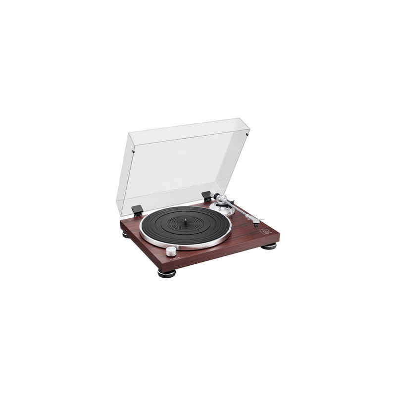 AT-LPW50BTRW ima kućište od 30 mm debelog, antivibracijskog MDF-a (vlaknaste ploče srednje gustoće) s prekrasnim furnirom od ružinog drveta za smanjenje niskofrekventne akustične povratne informacije i motor kontroliran senzorima koji osigurava precizne brzine snimanja pri 33-1/3 i 45 okretaja u minuti.