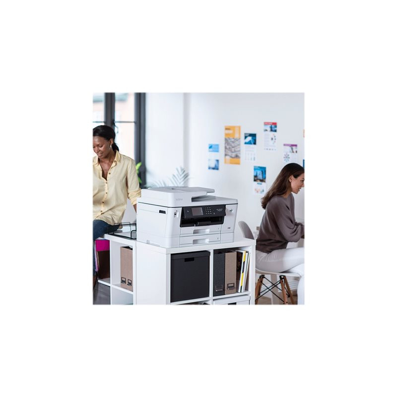 | The professional A3/A4 MFC-J3940DW all-in-one printer is built to last, meeting the needs of demanding small offices and business workgroups. A3 option enables you to produce a variety of A3, as well as A4 color documents, without any hassle, while experiencing high quality prints, fast print speeds and low running costs. This all-in-one device offers print, copy, scan and fax functionality. Print from your workstation, in a meeting room, or from your mobile device with wireless connectivity. Near Field Communication allows you to tap and print directly from your mobile device. | |