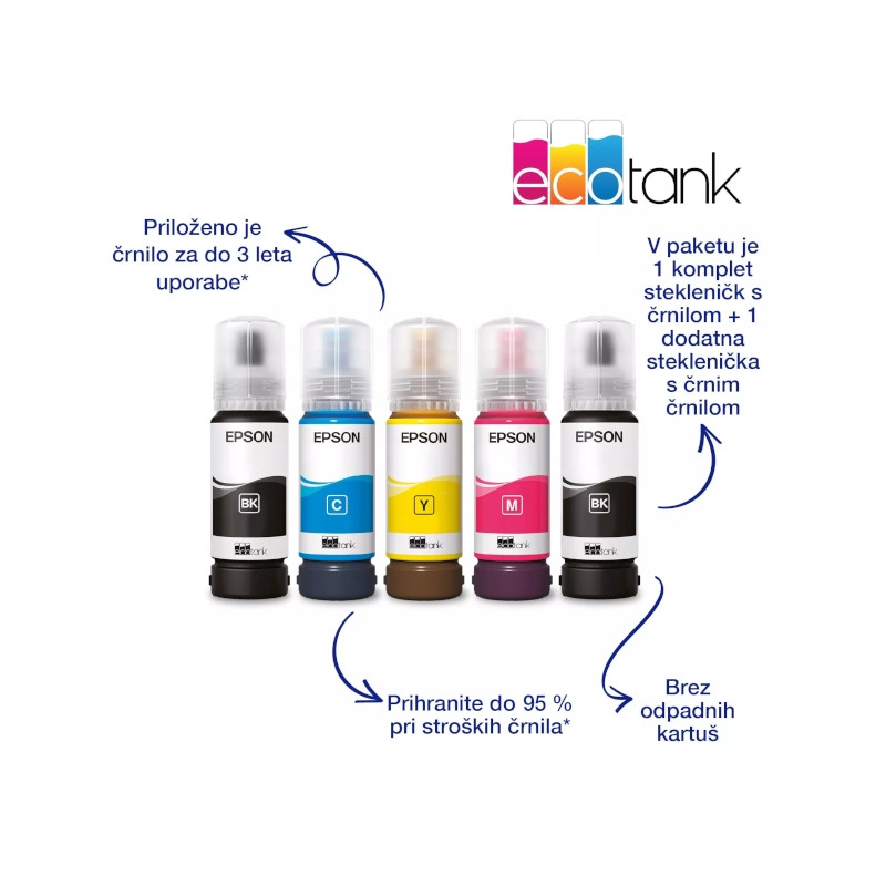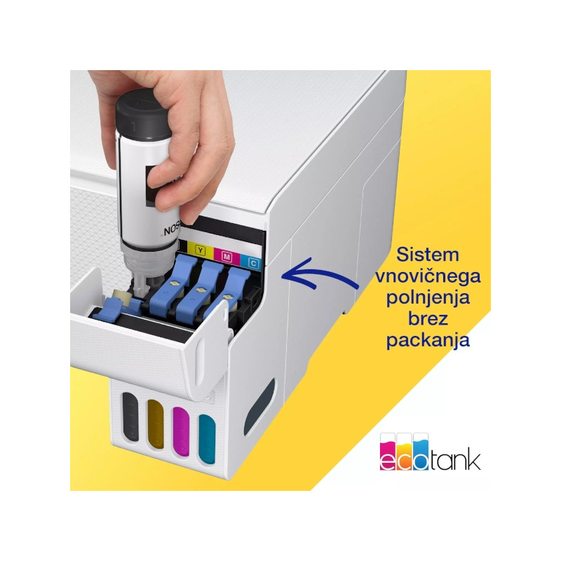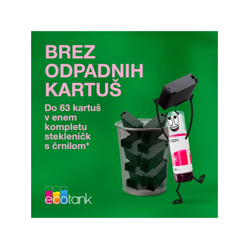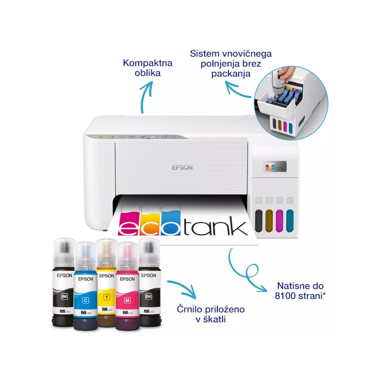 Epson EcoTank L3276 je kompaktni višenamjenski uređaj (ispis, skeniranje, kopiranje) dizajniran za kućne i uredske korisnike koji žele smanjiti troškove ispisa. Zahvaljujući inovativnoj EcoTank tehnologiji bez patrona, nudi izuzetno niske troškove rada i jednostavno punjenje pomoću priloženih bočica s tintom.