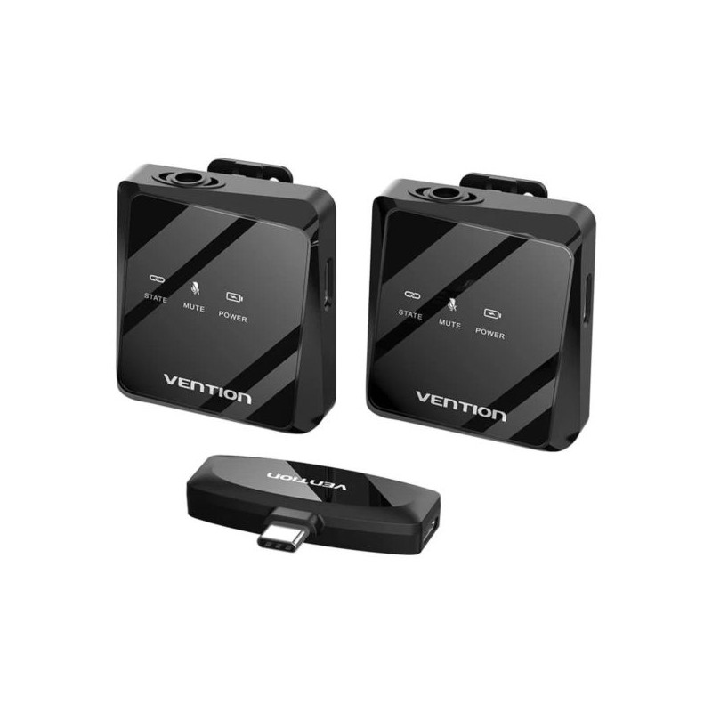 Vention USB-C 2-Pack Wireless Lavalier Microphone Black Type