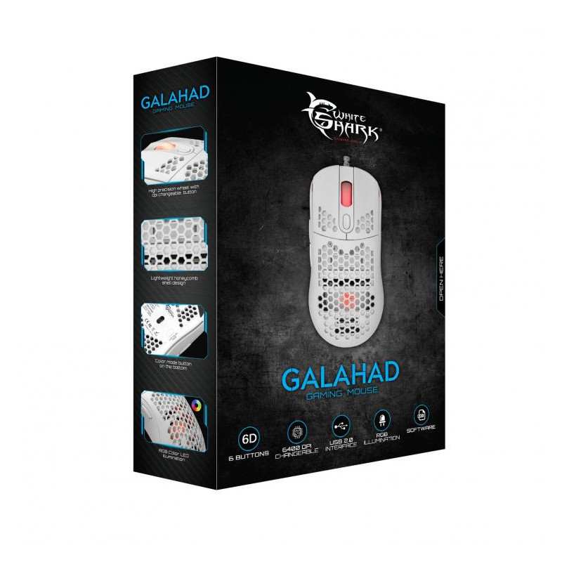 WHITE SHARK RGB gaming miš GALAHAD bijeli 6400dpi