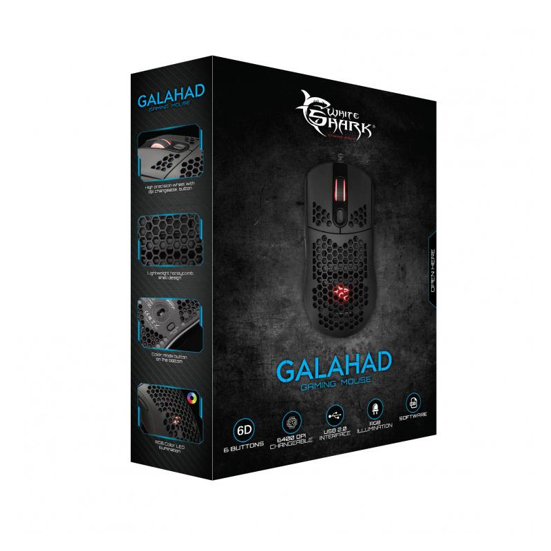 WHITE SHARK RGB gaming miš GALAHAD crni 6400dpi