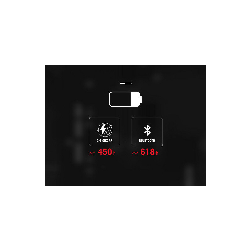 Miš omogućuje dugotrajno korištenje s jednom AA ili AAA baterijom. Omogućuje do 450 sati korištenja s prijemnikom od 2,4 GHz, te do 618 sati korištenja putem Bluetootha.