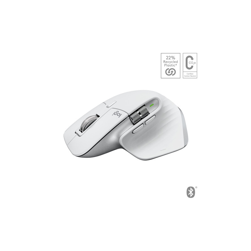 Logitech MX Master 3S for Mac. Veličina: Desno. Tehnologija otkrivanja pokreta: Laser, Sučelje uređaja: Bluetooth, Razlučivost pokreta: 8000 DPI, Vrsta tipki: Gumbi za pritiskanje, Broj tipki: 7, Vrsta kotačića: Kotač. Izvor napajanja: Baterije. Radi na svim površinama. Boja proizvoda: Srebro, Bijelo
