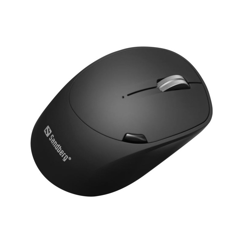 Sandberg Wireless Mouse Pro Recharge - Connects wirelessly either via Bluetooth integrated in the computer, or with the included USB dongle 2.4 GHz Bluetooth 5.0 Working distance: up to10 metres 6 buttons Scroll wheel Auto sleep mode after 10 minutes without use USB-C charging cable Rechargeable battery 500 mAh Optical resolution: 1000-1200-1600 DPI