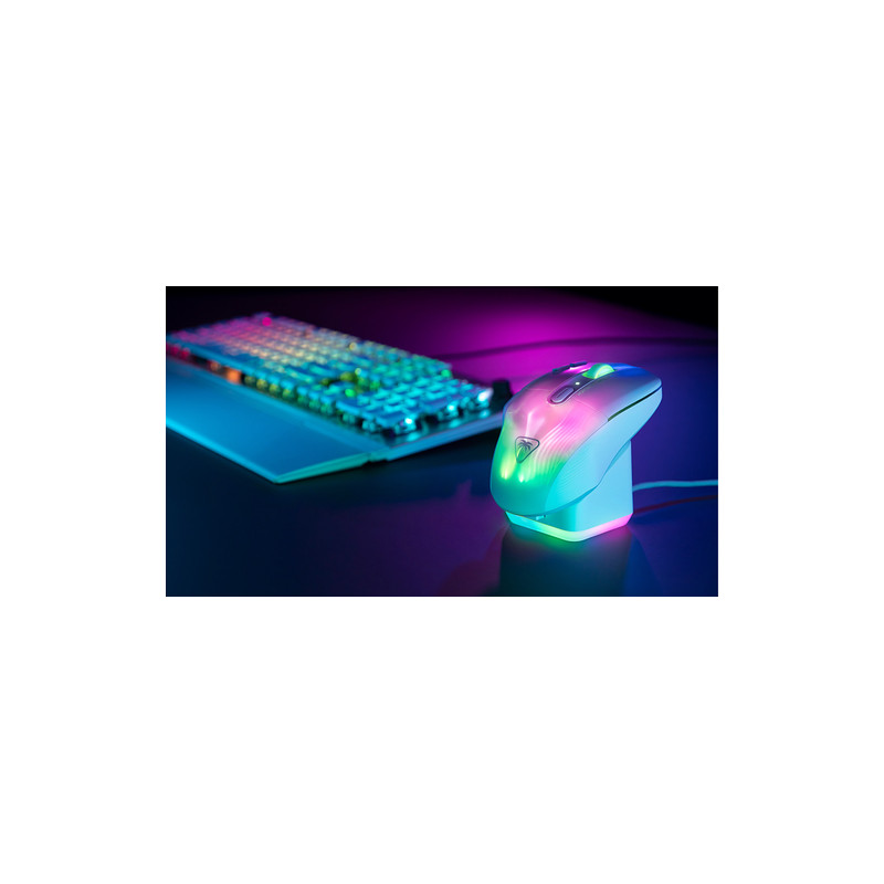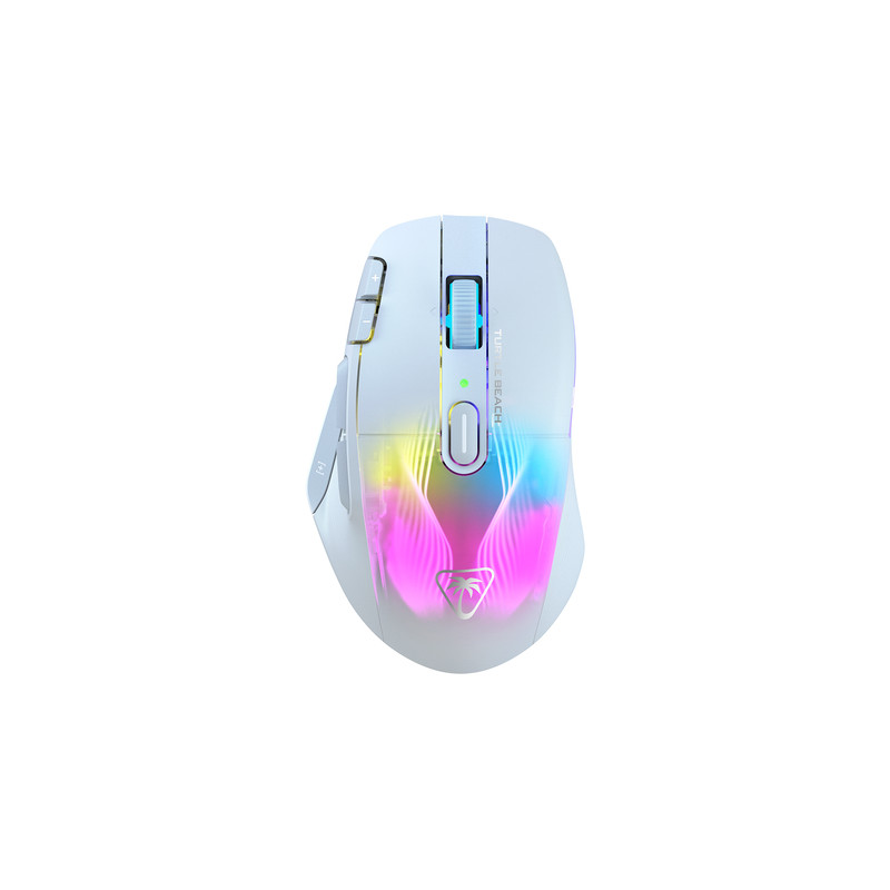 Turtle Beach Kone XP Air. Veličina: Desno. Tehnologija otkrivanja pokreta: Optički, Sučelje uređaja: RF bežični + Bluetooth, Razlučivost pokreta: 19000 DPI, Vrsta kotačića: Kotač, Ubrzanje (max): 50 G. Boja osvjetljenja: Multi. Izvor napajanja: Baterije. Boja proizvoda: Bijelo