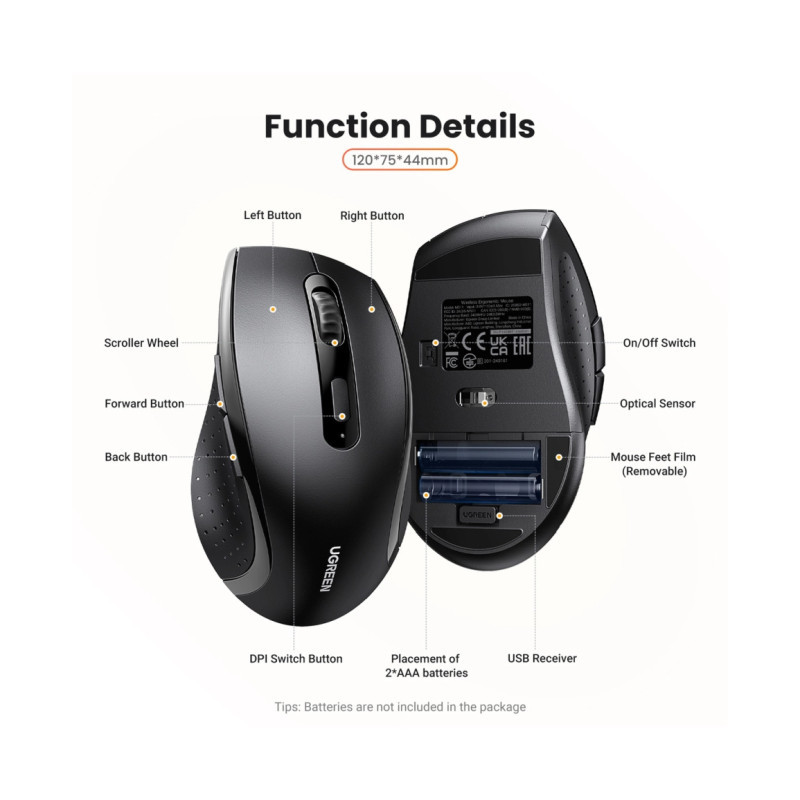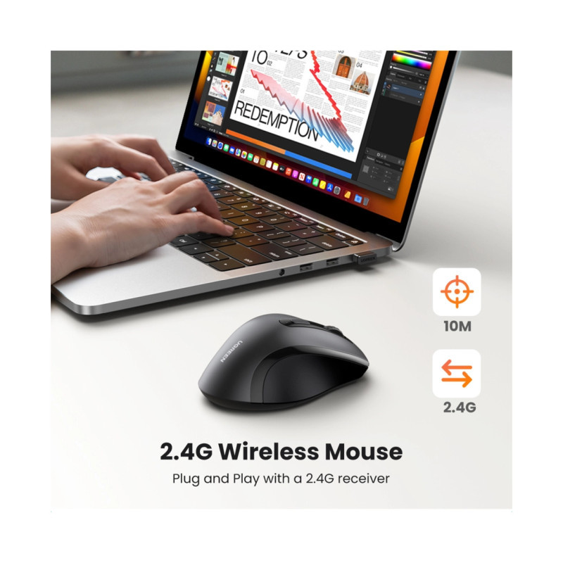 - Bežični miš ima bežični domet korištenja od 15 m, smanjujući smetnje i kašnjenja. Nema potrebe za instaliranjem upravljačkih programa, spojite bežični miš UGREEN na uređaj i spremni ste za upotrebu!