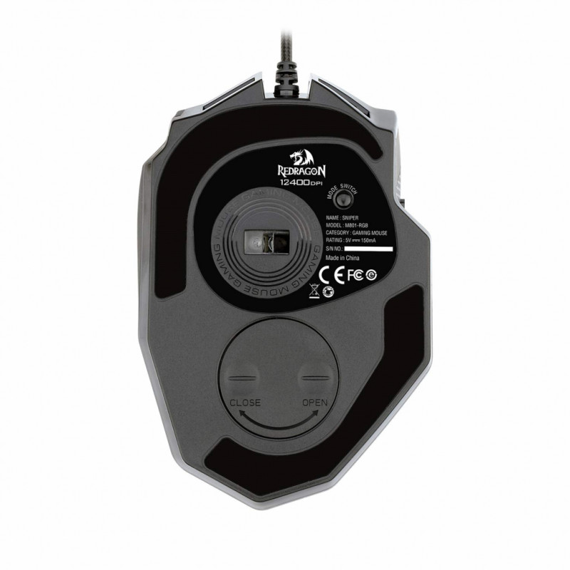 Žičani miš REDRAGON SNIPER M801-RGB nudi korisniku do 12400 DPI, DPI je prilagodljiv (500/1000/2000/4000/6200/12400 DPI). Visoko precizni senzor osigurava iznimnu točnost, dok Omron mikro prekidači pružaju dug životni vijek, veću trajnost i iznimnu reaktivnost tijekom igranja video igara. RGB osvjetljenje s 8 svjetlosnih efekata (pozadinsko osvjetljenje se može onemogućiti). Miš ima 9 programabilnih gumba, 2 bočna gumba, gumb Rapid Fire i 5 memorijskih profila s makro snimanjem. Ergonomski oblik miša pruža iznimnu udobnost i preciznost tijekom igranja igara poput Fortnite Games, SIMS 4, Fallout 4, World of Warcraft, PUGB, Overwatch, Call of Duty ili drugih igara u kojima ste pucač iz prve osobe. Značajke: RGB osvjetljenje s 8 različitih svjetlosnih efekata 9 programabilnih tipki Gumb za brzo pucanje Makro snimanje Izdržljivost: do 20 milijuna klikova Klizni kotač s površinom protiv klizanja Do 12400 DPI (500/100/2000/4000/6200/12400 DPI) 8-dijelni (8 x 2,4 grama) komplet za podešavanje težine Izdržljivi TEFLON jastučići za glatko i precizno klizanje 3 m USB kabel i magnetski niskopropusni filtar za smanjenje elektromagnetskih smetnji Pozlaćeni USB konektor za pouzdanu vezu Dimenzije proizvoda 12 × 8,3 × 4,2 cm, težina proizvoda: 162g