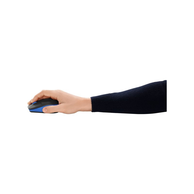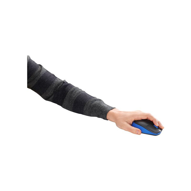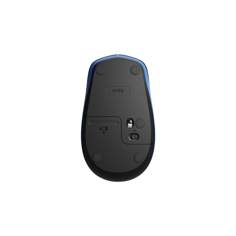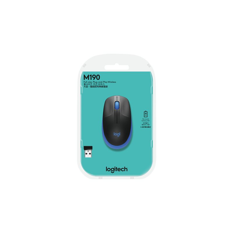 | Logitech M190 is a full-size wireless mouse with a comfortable contoured design that follows the natural curve of medium to large hands. | |