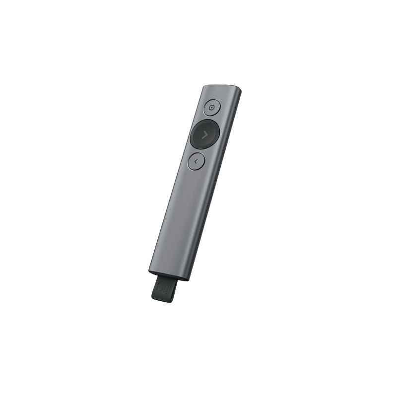 Alat za bežično upravljanje prezentacijom Logitech Spotlight možete povezati s računalom putem Bluetootha ili putem USB prijemnika. Djeluje na udaljenosti do 30m, a odlikuje ga širok raspon naprednih funkcija i mogućnosti prilagodbe. Kompatibilan je s Windows i Mac sustavima te s mnogim aplikacijama namijenjenim prezentacijama, kao što su npr. Powerpoint, PDF, Prezi, Google...