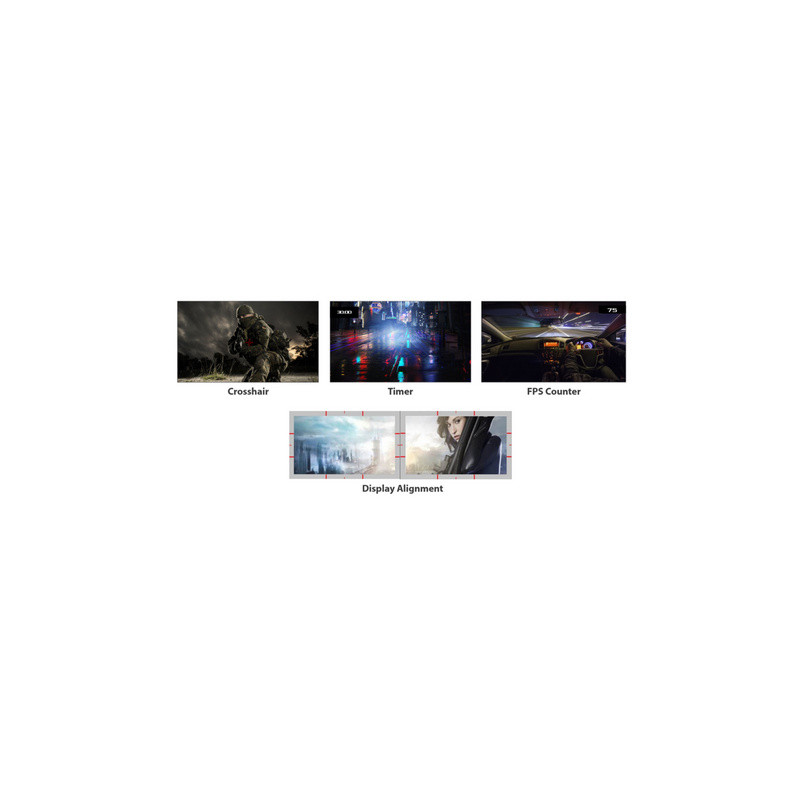 Zaslon ima niz značajki dizajniranih za poboljšanje igranja. Podržava GamePlus (scope, štoperica, FPS counter,...), nudi smanjenje plave svjetlosti i smanjuje treperenje. Stalak vam omogućuje promjenu kuta.