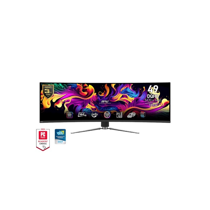 MSI MPG 491CQP QD-OLED je vrhunski 49-inčni zakrivljeni monitor za igranje dizajniran za potpuno uranjanje u igranje. S omjerom stranica 32:9 i rezolucijom DQHD (5120 × 1440), zamjenjuje dva 27-inčna zaslona i nudi izuzetno širok kut gledanja i realistično iskustvo.
