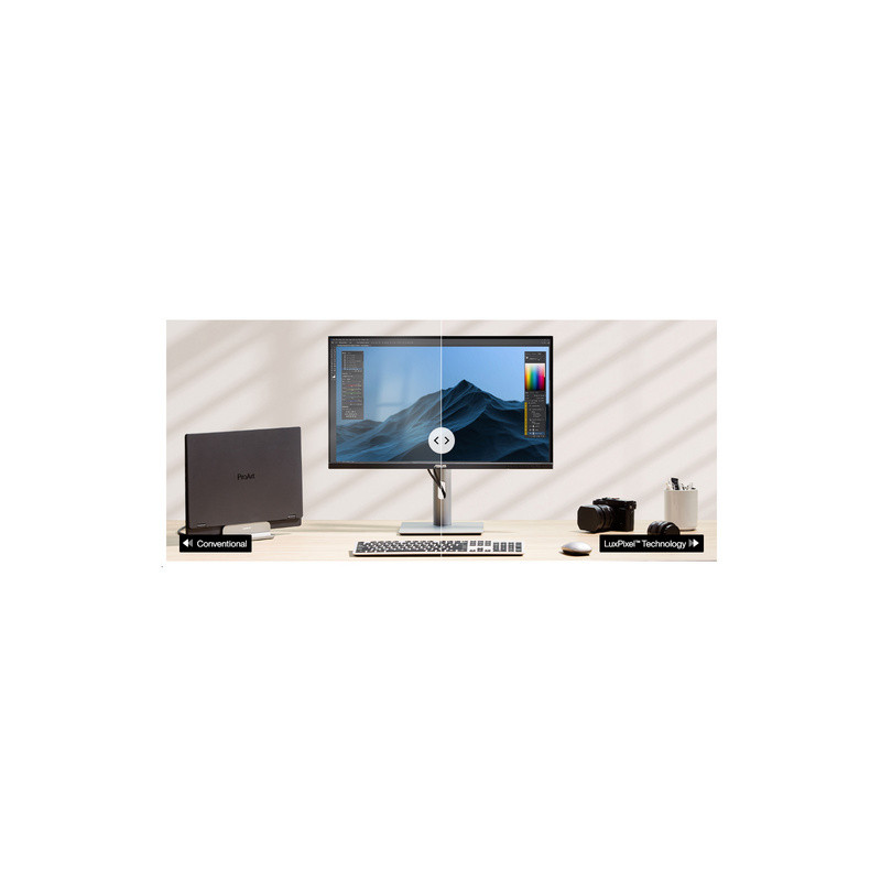Monitor prikazuje boje u 95% DCI-P3 i 100% sRGB spektru boja i pruža ΔE<2 točnost prikaza. Ploča je također tvornički kalibrirana i potvrđena od strane Calman Verification. Visoka brzina osvježavanja od 100 Hz također ga čini pogodnim za renderiranje.