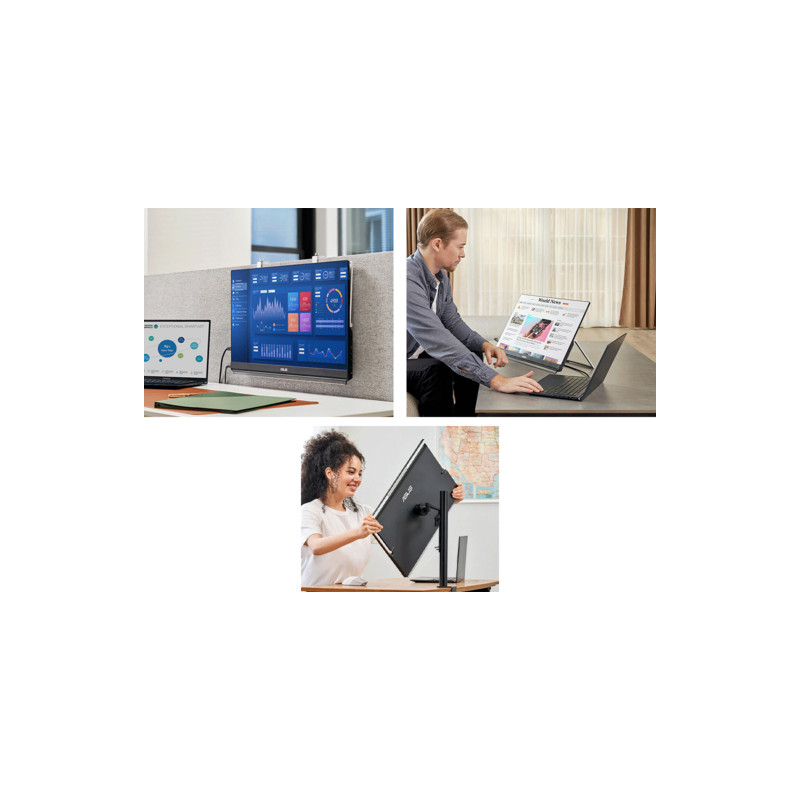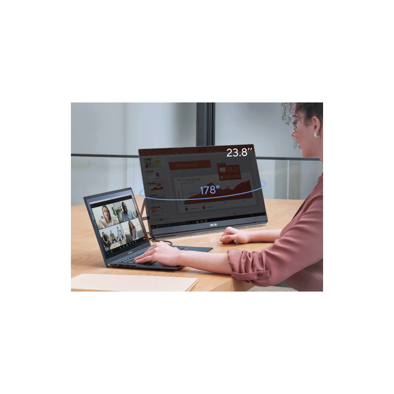 Prijenosni zaslon dizajniran za multitasking s velikim 23,8-inčnim IPS panelom u Full HD rezoluciji. Nudi puno prostora za rad i stvaranje. Elegantni profil debljine samo 7,6 mm i težine samo 2,8 kg olakšavaju nošenje. Višestruke mogućnosti rasporeda pružaju potpunu fleksibilnost, tako da ga možete lako prilagoditi bilo kojem okruženju. Njegova svestranost omogućuje vam da svaki kutak pretvorite u učinkovito radno okruženje.