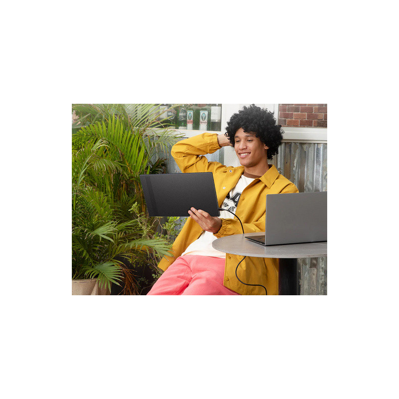 Zaslon vam omogućuje proširenje radnog prostora u uredu, kod kuće ili u pokretu. Monitor se može praktično postaviti lijevo, desno ili iza prijenosnog računala. Dva USB-C priključka sa svake strane omogućuju veću fleksibilnost i jednostavnu prenosivost.