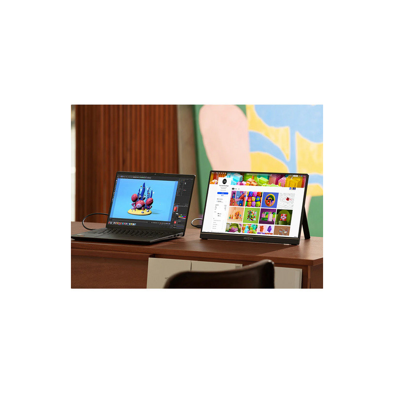 A1 vam omogućuje brzo i jednostavno proširenje radnog prostora. Koristite ga kao sekundarni zaslon pored prijenosnog računala, kao glavni zaslon za mobilne uređaje ili konzole. S dva USB-C i Mini HDMI priključka, povezivanje je izuzetno jednostavno, a monitor radi bez dodatnih upravljačkih programa. Ima stabilan stalak i mogućnost postavljanja u portretnu ili pejzažnu orijentaciju.