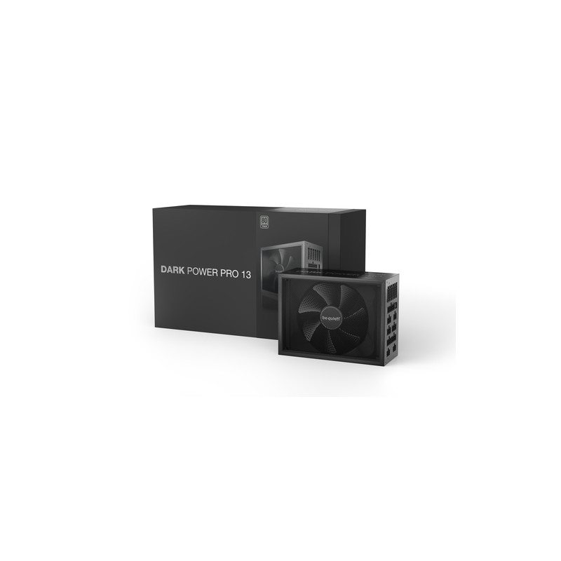 be quiet! Dark Power Pro 13 | 1300W. Ukupna snaga: 1300 W, Ulazni napon izmjenične struje: 115 - 240 V, Vršna snaga: 1400 W. Poveznik napajanja matične ploče: 20+4 pin ATX, Duljina kabela napajanja matične ploče: 60 cm, Duljina kabela SATA napajanja: 500,600,750,800,900,950,1050 mm. Svrha: PC/osobno računalo, Faktor forme uređaja za napajanje (PSU): ATX, Certifikat 80 PLUS: 80 PLUS Titanium. Boja proizvoda: Crno, Tip hlađenja: Aktivno, Promjer ventilatora: 13,5 cm. Priloženi kabeli: CPU, PCIe, Peripheral (Molex), SATA