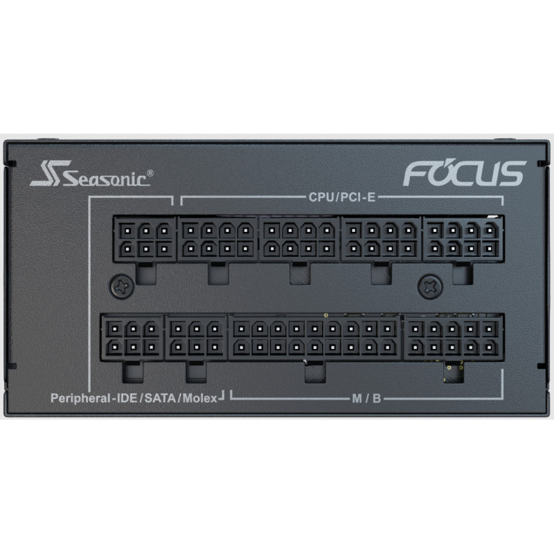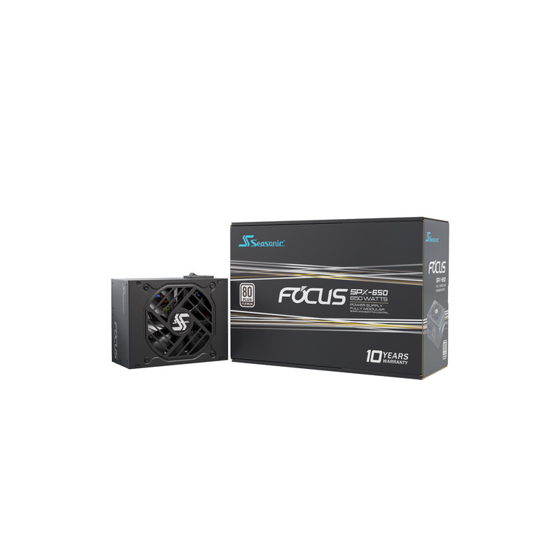 Seasonic FOCUS-SPX-650. Ukupna snaga: 650 W, Ulazni napon izmjenične struje: 100 - 240 V, Ulazna frekvencija izmjenične struje: 50 - 60 Hz. Poveznik napajanja matične ploče: 20+4 pin ATX, Duljina kabela napajanja matične ploče: 35 cm. Svrha: PC/osobno računalo, Faktor forme uređaja za napajanje (PSU): CFX, Certifikat 80 PLUS: 80 PLUS Platinum. Boja proizvoda: Crno, Tip hlađenja: Aktivno, Promjer ventilatora: 9,2 cm. Priloženi kabeli: AC, PCIe, Peripheral (Molex), Peripheral (Molex) to SATA 3.3, SATA